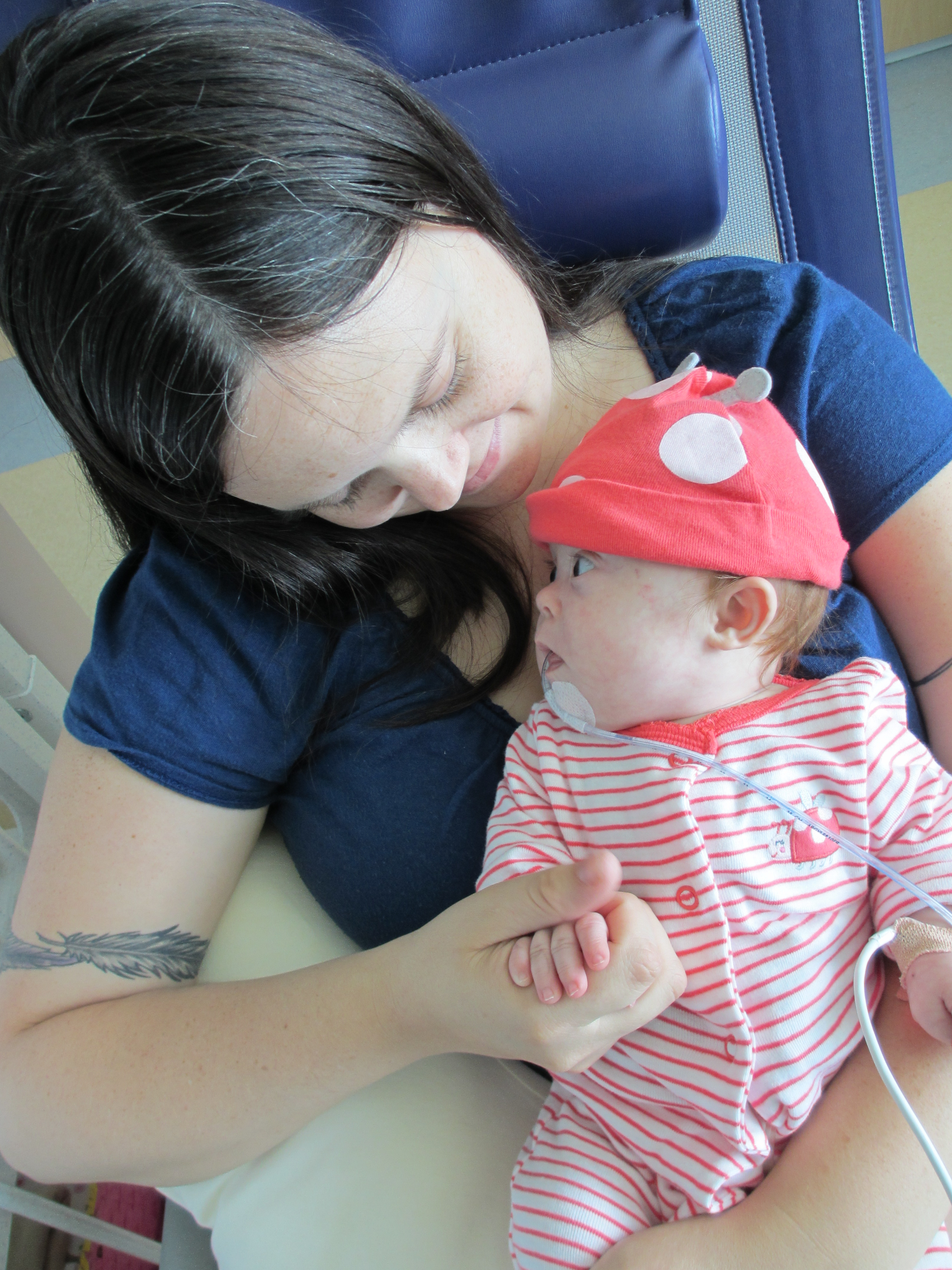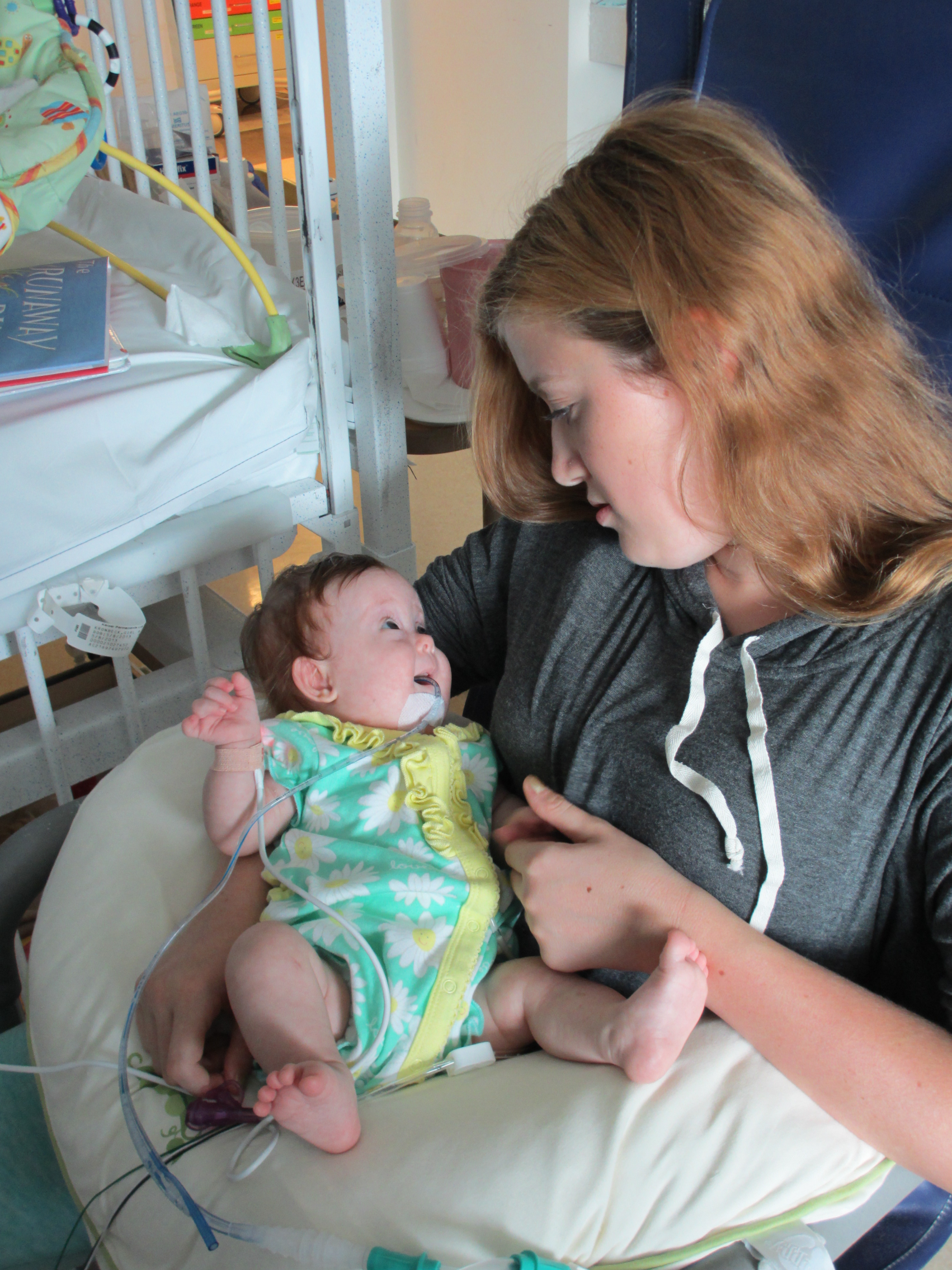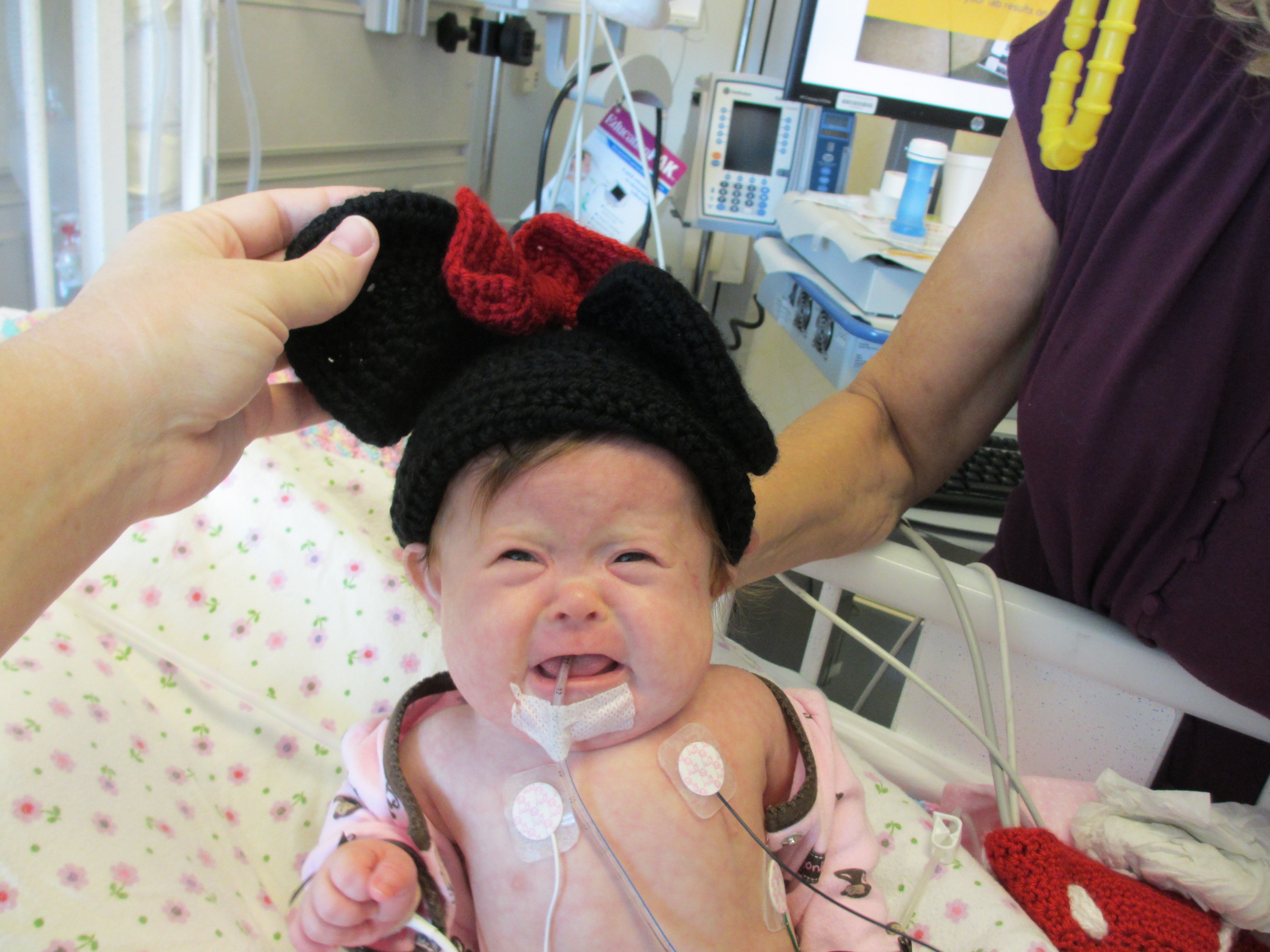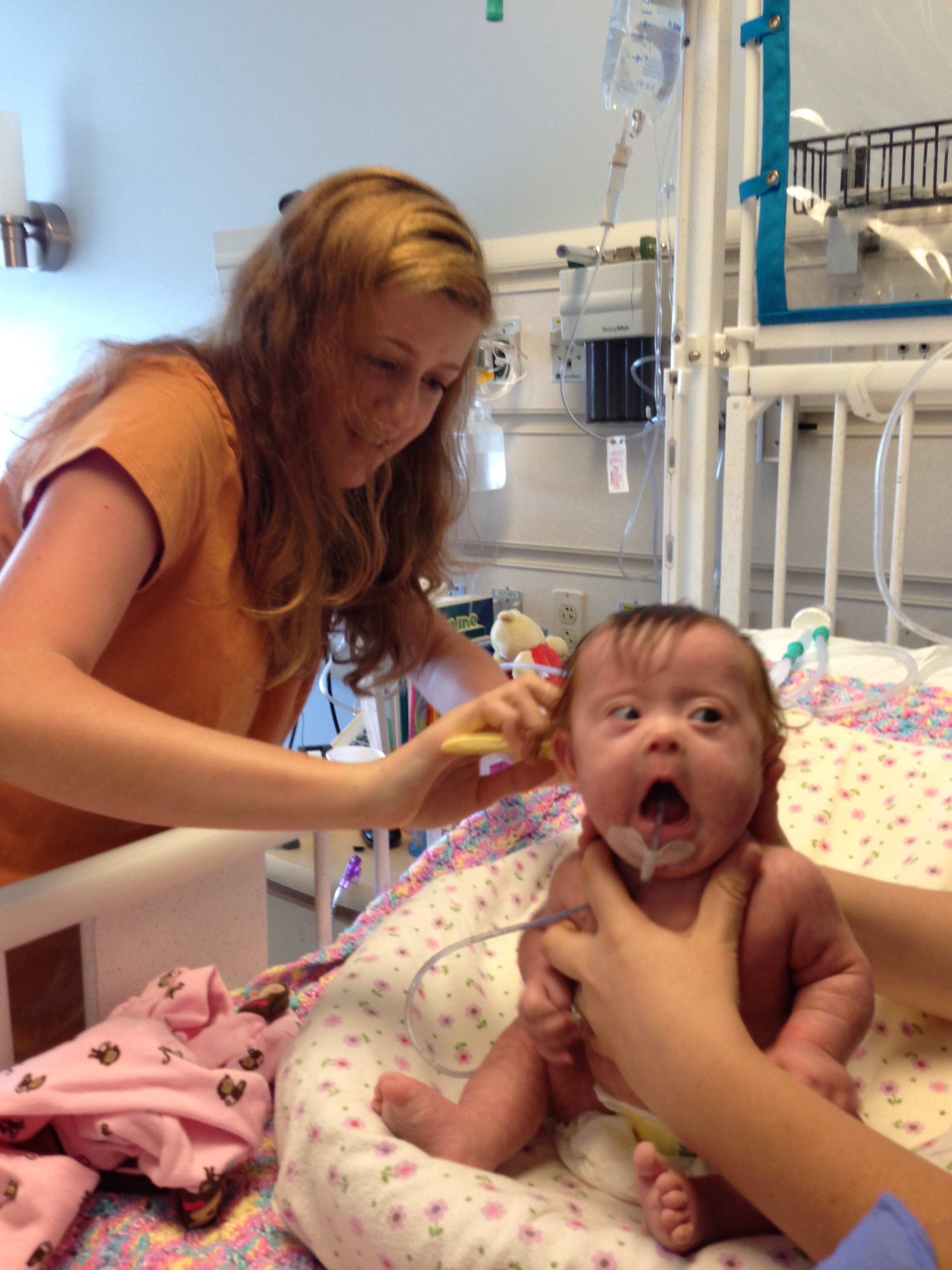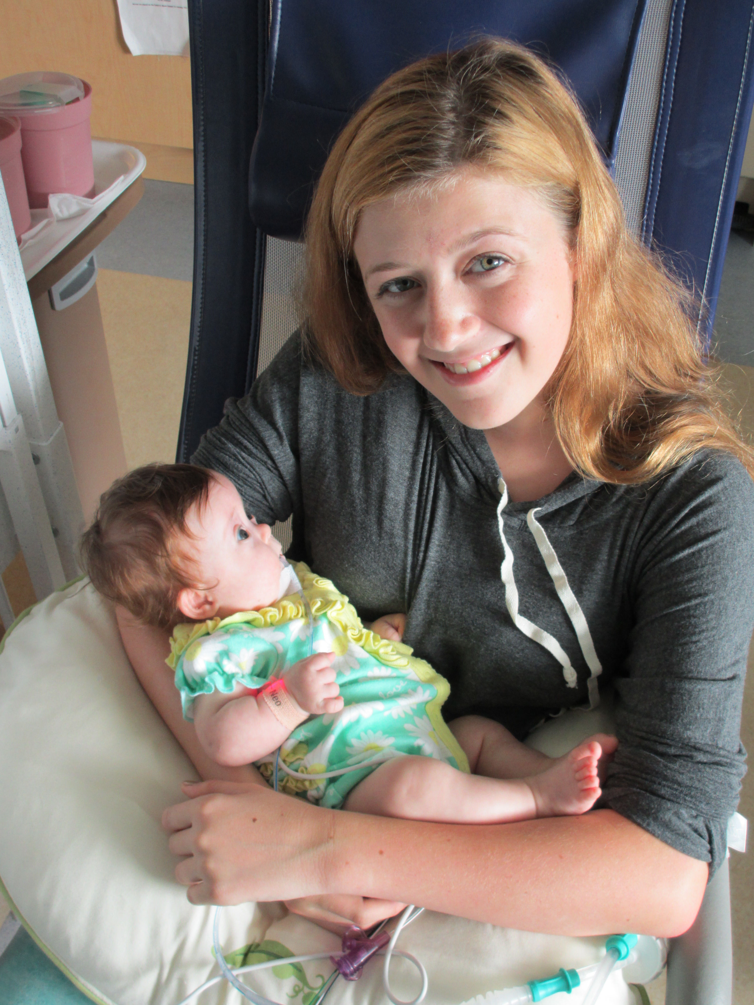 Now for a random musing: It’s funny how nurses sometimes try to rationalize a situation without fully assessing it – kind of like the other day when they assumed BabyBug’s horrible raspy breaths were actually the sounds of the suction tube sucking when in fact they suggested the opposite. Tonight I let the night nurse know that Leah’s suction pump was vacillating between off and barely-on-but-not-really (it’s on low intermittent but this was pretty ridiculously low). She said it was supposed to be like that because it was on low intermittent suction, and headed back out. I watched the meter for a minute to see if it would change, and then went out and got her again and said I thought maybe someone had turned it down because the meter was not really moving and neither were the secretions in the tube (it’s happened a few times that a nurse would put it on continuous suction to flush the tube and then forget to switch it back to intermittent, so someone turning it down was certainly a possibility). She looked and repeated that it was supposed to be like that. I said no, usually the meter is a lot higher. She said she didn’t want to put it any higher because it would suction too much. I said it wasn’t moving at all.