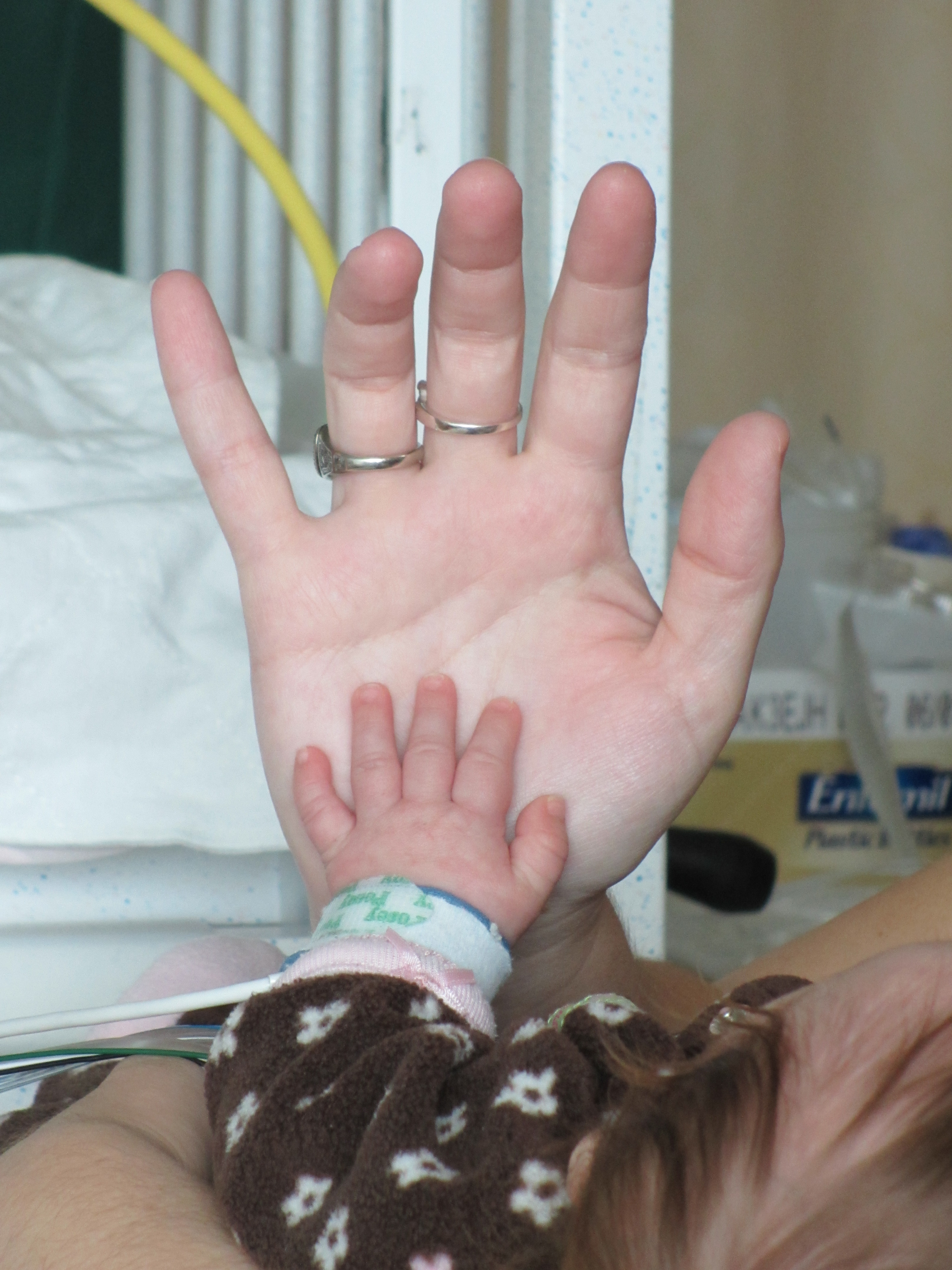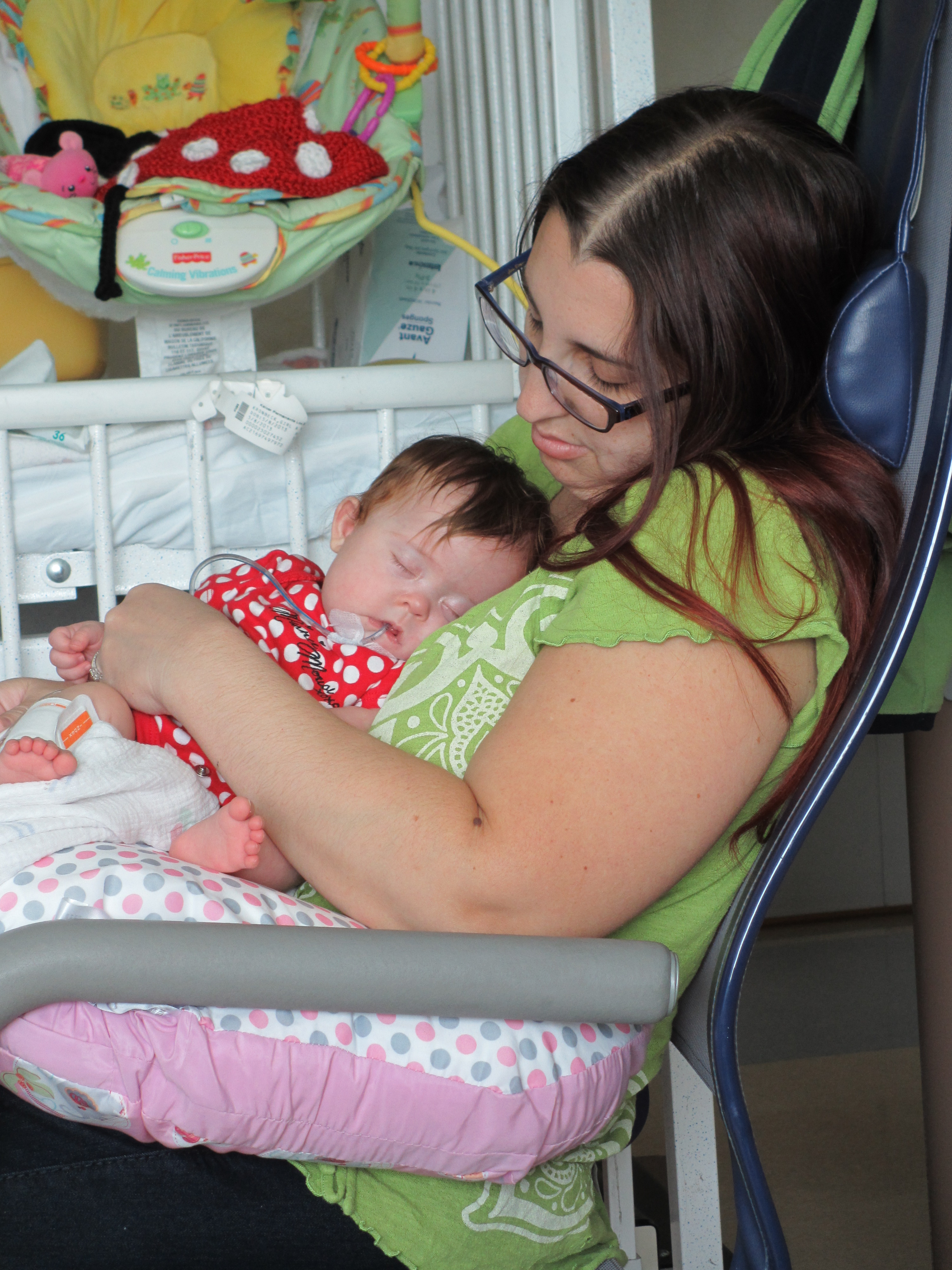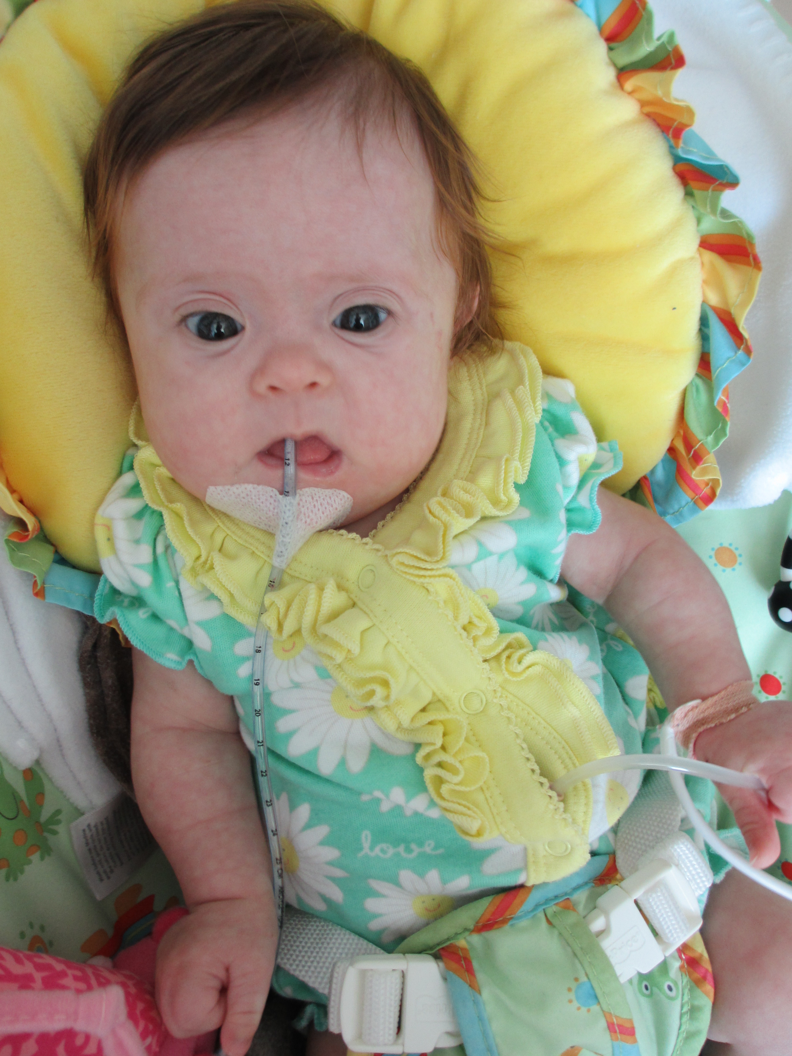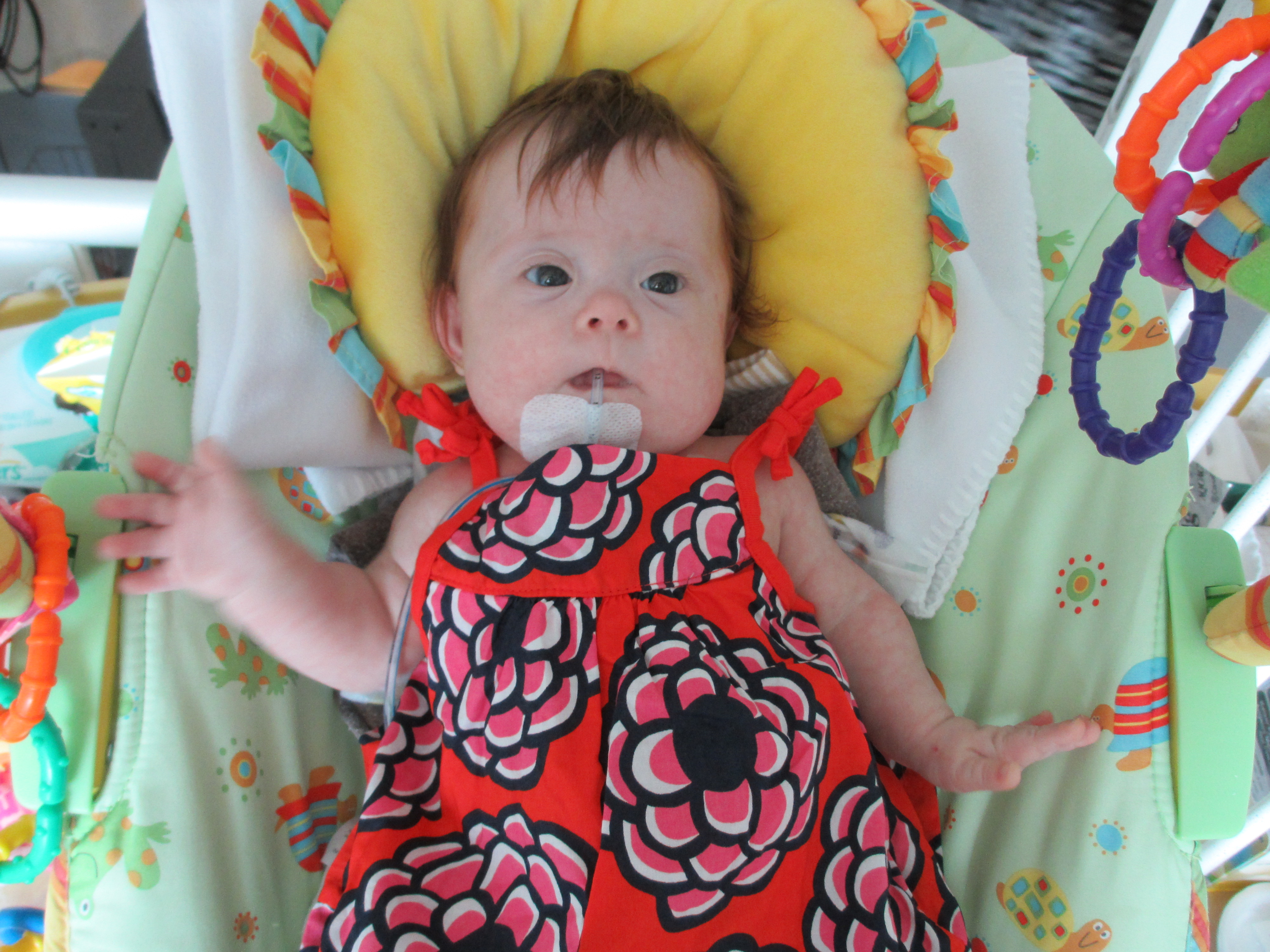 Now for a random musing: It’s funny how nurses sometimes try to rationalize a situation without fully assessing it – kind of like the other day when they assumed BabyBug’s horrible raspy breaths were actually the sounds of the suction tube sucking when in fact they suggested the opposite. Tonight I let the night nurse know that Leah’s suction pump was vacillating between off and barely-on-but-not-really (it’s on low intermittent but this was pretty ridiculously low). She said it was supposed to be like that because it was on low intermittent suction, and headed back out. I watched the meter for a minute to see if it would change, and then went out and got her again and said I thought maybe someone had turned it down because the meter was not really moving and neither were the secretions in the tube (it’s happened a few times that a nurse would put it on continuous suction to flush the tube and then forget to switch it back to intermittent, so someone turning it down was certainly a possibility). She looked and repeated that it was supposed to be like that. I said no, usually the meter is a lot higher. She said she didn’t want to put it any higher because it would suction too much. I said it wasn’t moving at all.