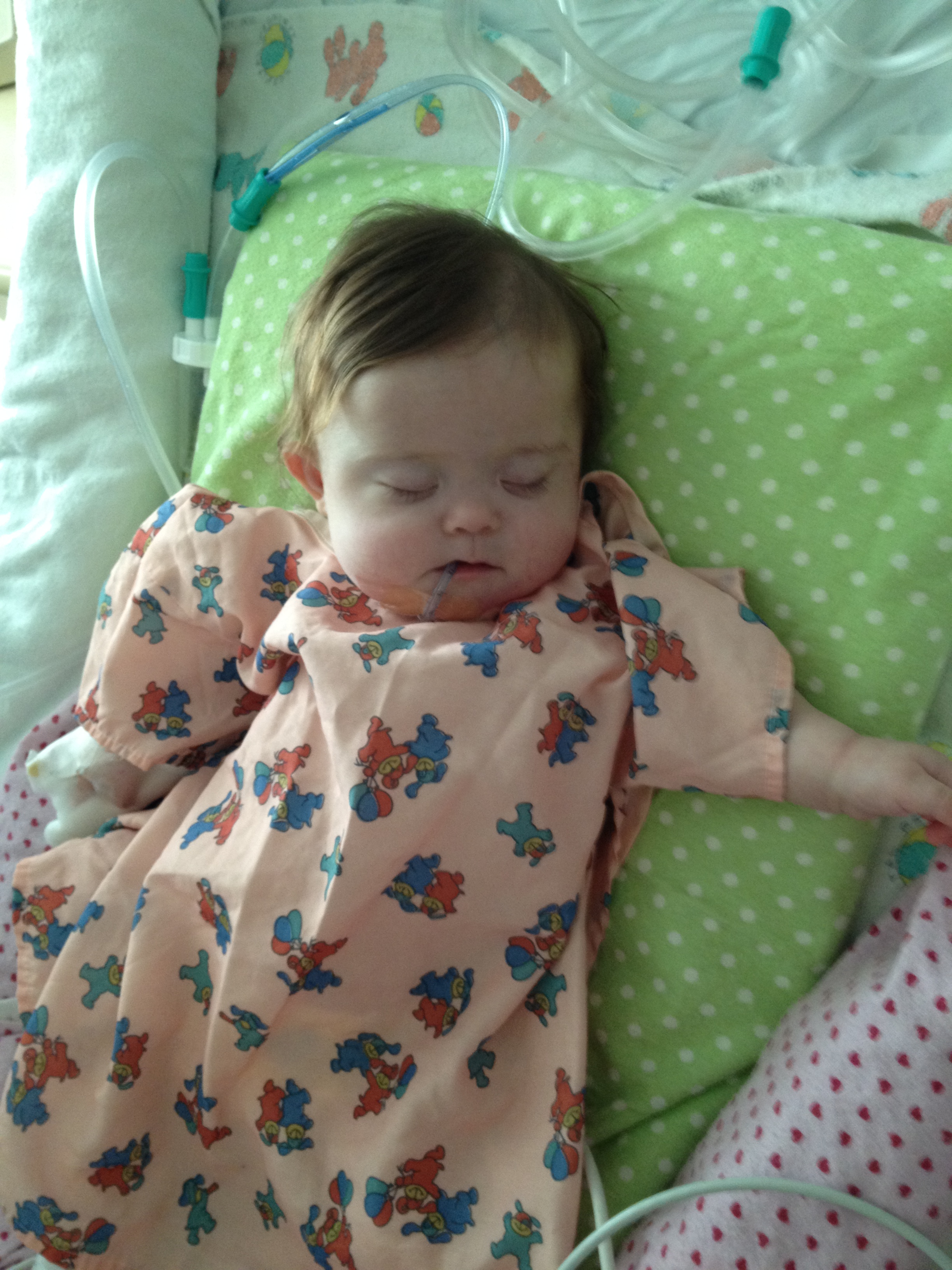 Okay, when I said I wanted to see eyeballs, I didn’t mean WHILE Leah was still supposed to be sleeping! A couple of hours ago the little stinker tried to wake up. Not like, eyes cracked open a tiny bit, but full on open (albeit bleary and drugged) eyes, trying to look around and being all, “Maaaaamaaaa, what’s going on?” I called the nurse and then sang to Leah with my hand on her head until the nurse could administer another dose of Ativan on top of the sedative she’s already getting. Oy vey, bitty Bug! I want nothing more than to look into my BabyPie’s eyes right now, but not if it means she’s going to jeopardize her sutures. OMG. Nervous Mama!