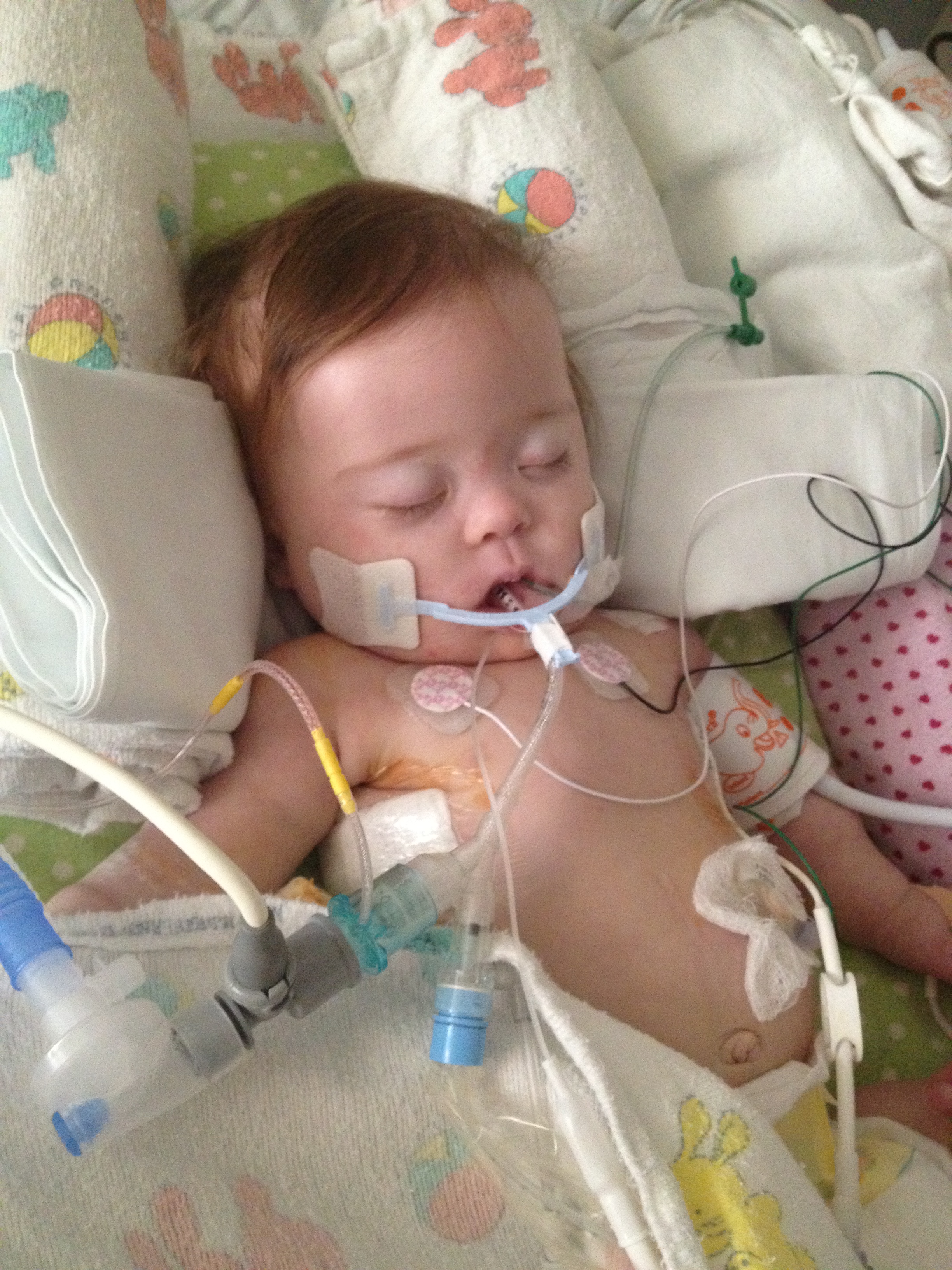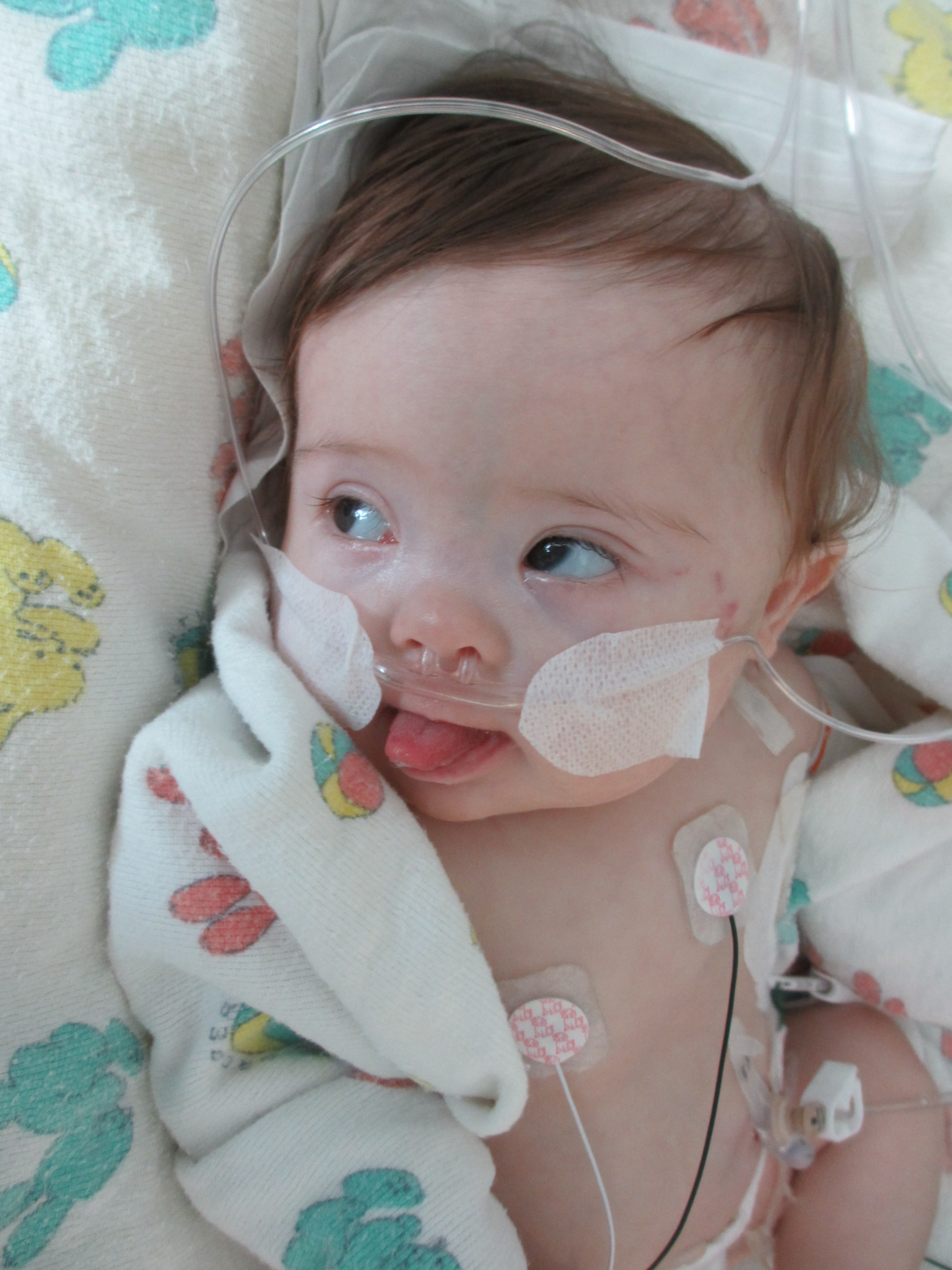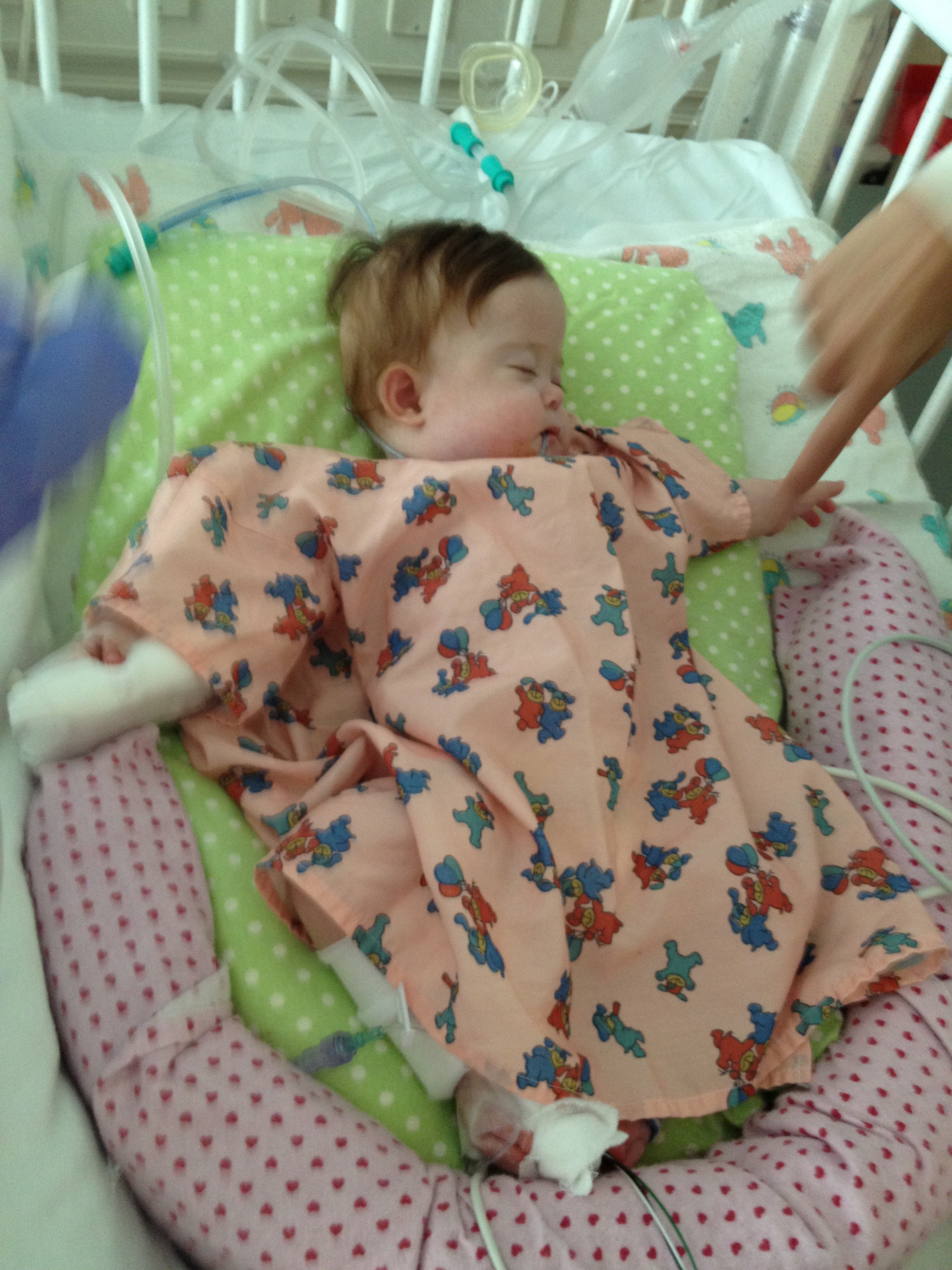 As I mentioned, the biggest concerns in the coming days are tears and leaks. Another major concern is pneumonia. The last major concern right now is that Leah needs to stay paralyzed and unconscious for the next few days. Children with Down Syndrome can have a high tolerance for pain medications and sedatives. Last night Leah tried to open her eyes a couple of times when she knew we were next to the bed. They have already had to increase her dose of Fentanyl and also add another sedative on top of that. The paralytic is administered every hour, and I’m told that as she gets closer to the end of the hour she starts stirring a little bit. Today’s nurse said the sedatives and paralytic are barely doing their job. She will need a lot of monitoring over the next few days to make sure that she doesn’t wake up. There is a chance that they could have to raise the dose again (and again) and eventually her body could become addicted to the sedatives, which would mean she could go through withdrawal when it is time for them to stop. We’re hoping that because she will be under for such a short period of time we won’t need to get to that point. Let’s hope not!