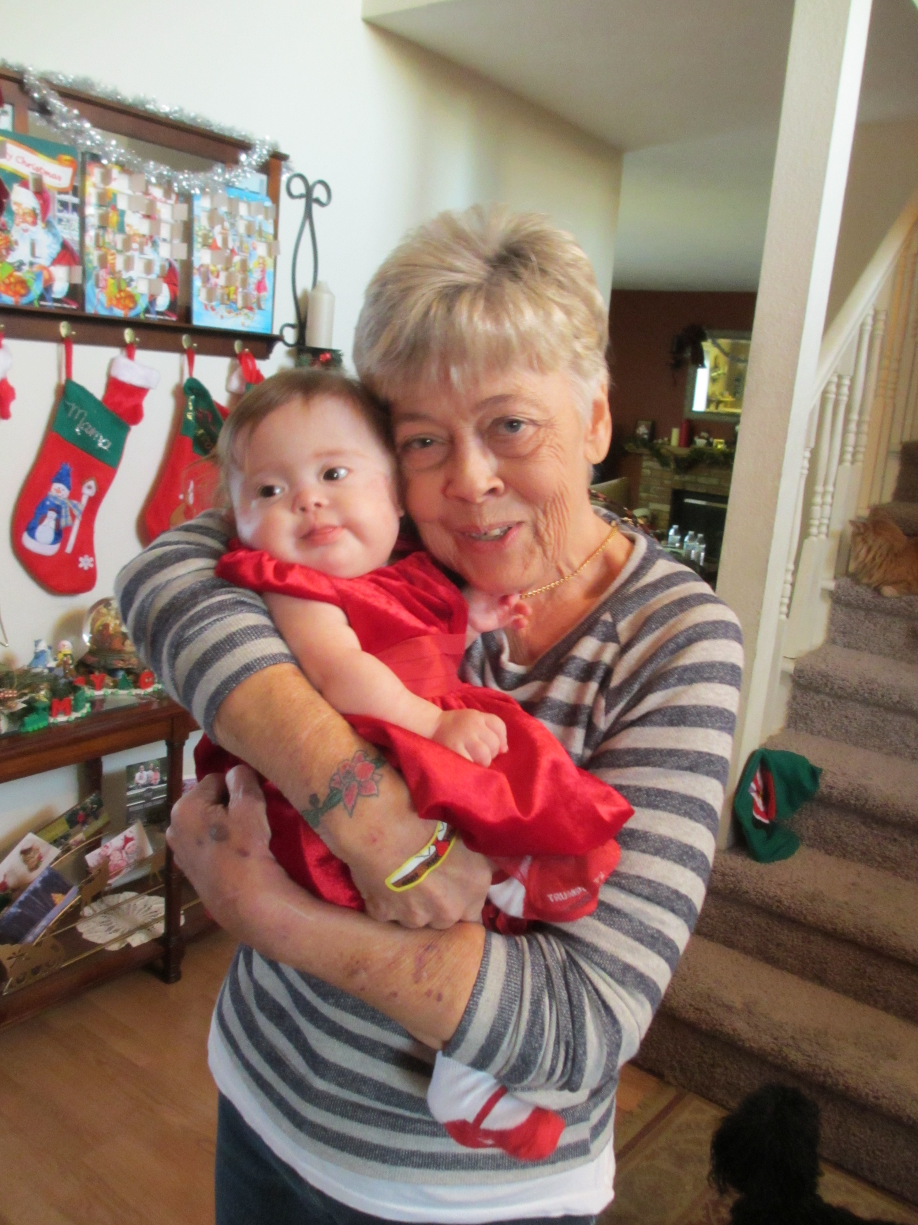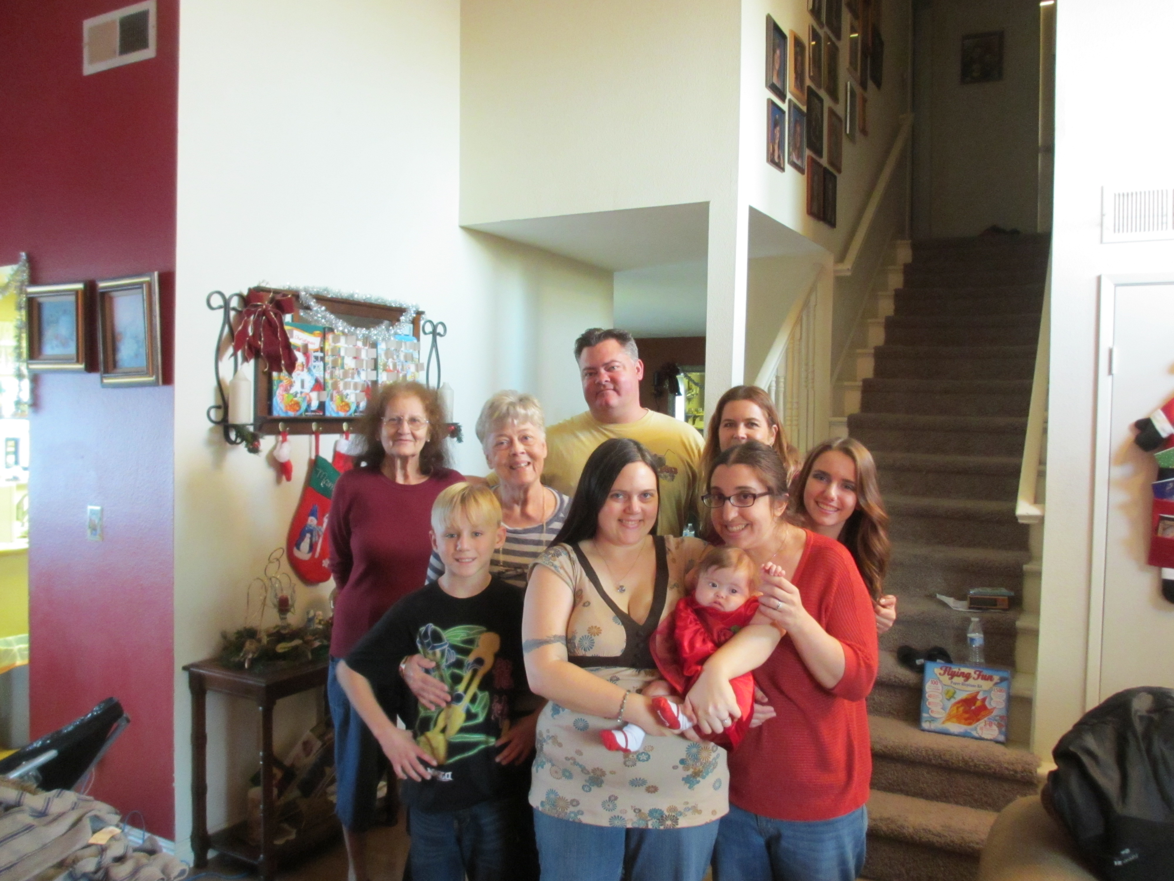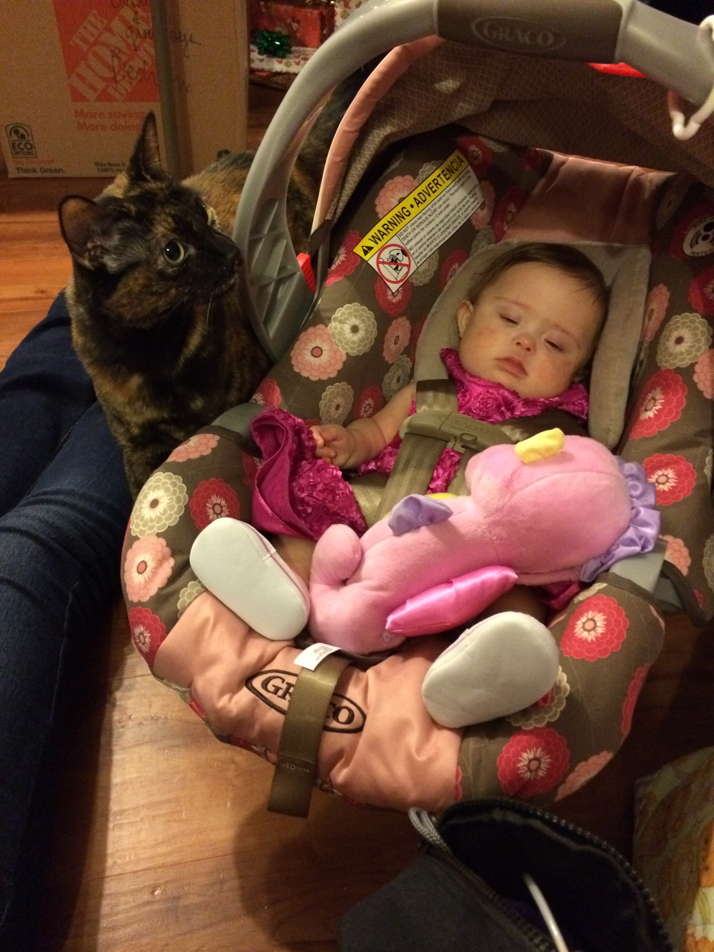 As we do every year, we spent Christmas day with Mandy’s brother and his family, since they celebrate Christmas. BabyBug was chipper this morning (until her bath), but she fell asleep in the car and then slept through most of the day. We kept checking on her to see if she’d wake up and visit, but she was determined to get her beauty sleep! She finally woke up a little after 4PM and had some nice snuggle time with her Uncle Bry & Auntie Co. It was a lovely day!