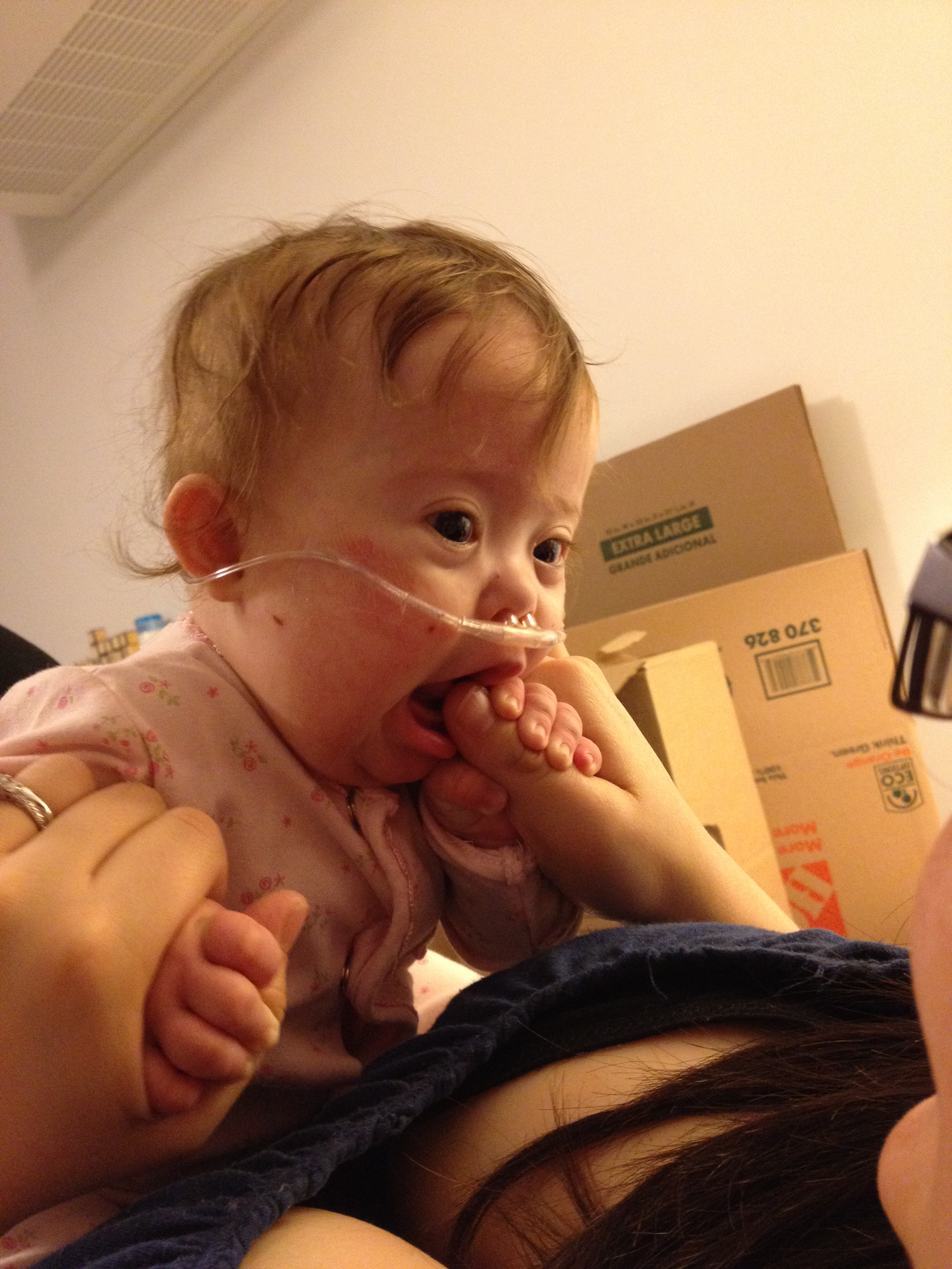 We are laughing because our cannula tape came off. Baby Win!