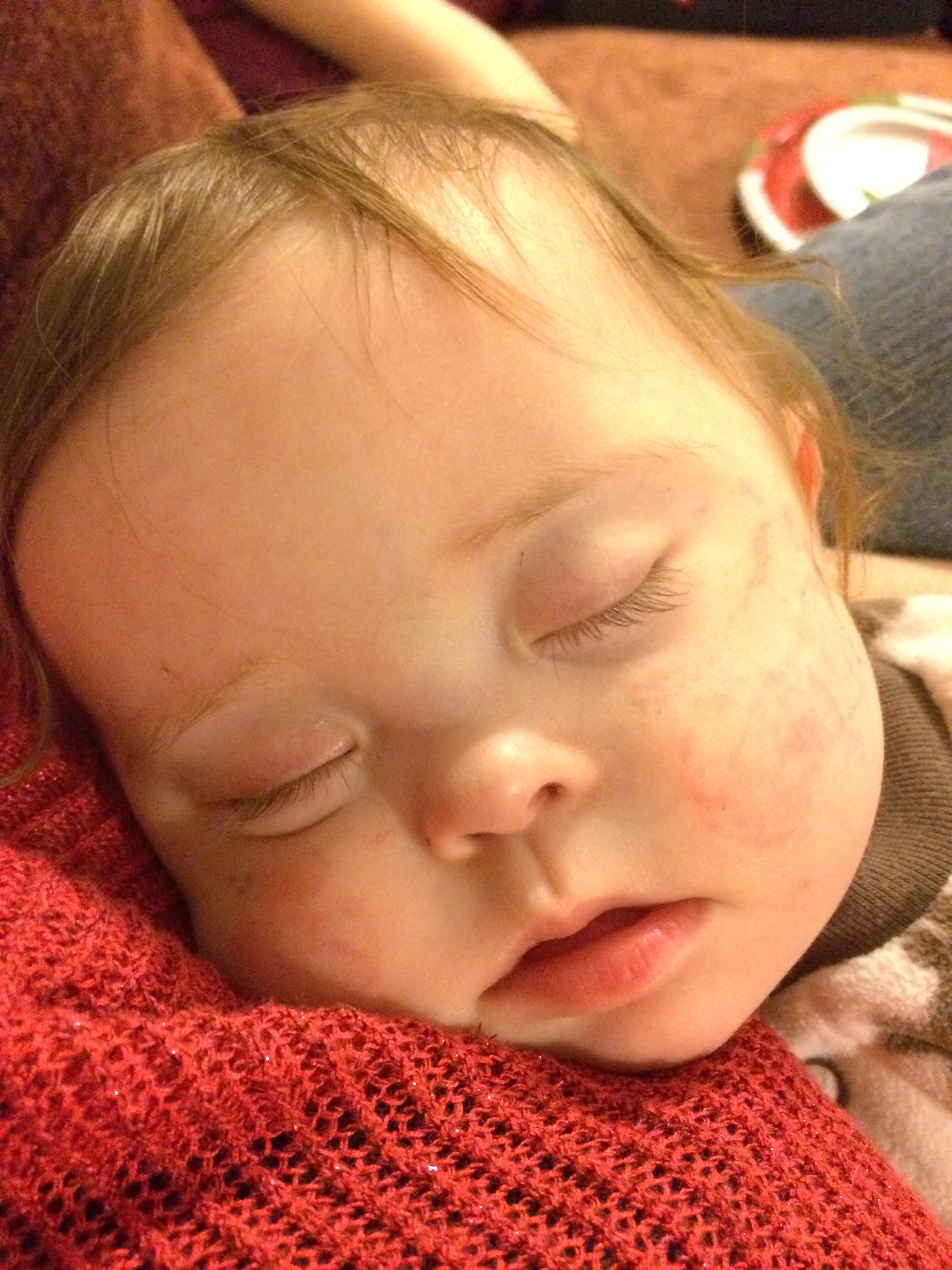 This is what Leah looked like when we pulled her out of the car this afternoon. What is wrong with this picture?