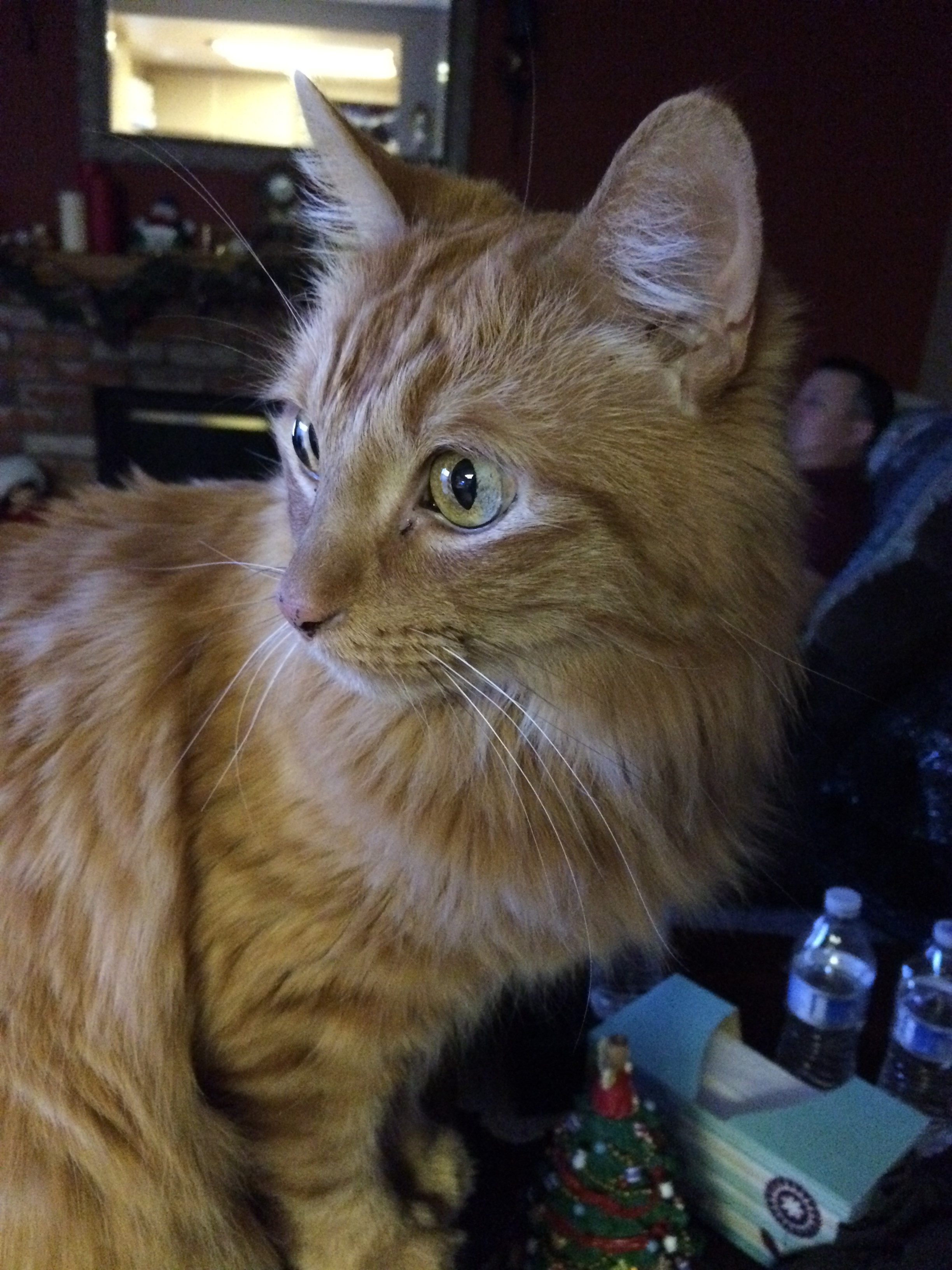 Cousin Mocha (I call her Moo-cat because she is fat) investigates the new visitor. “Hmm. Friend? Enemy? Snack? Toy? Never mind. It’s boring.”