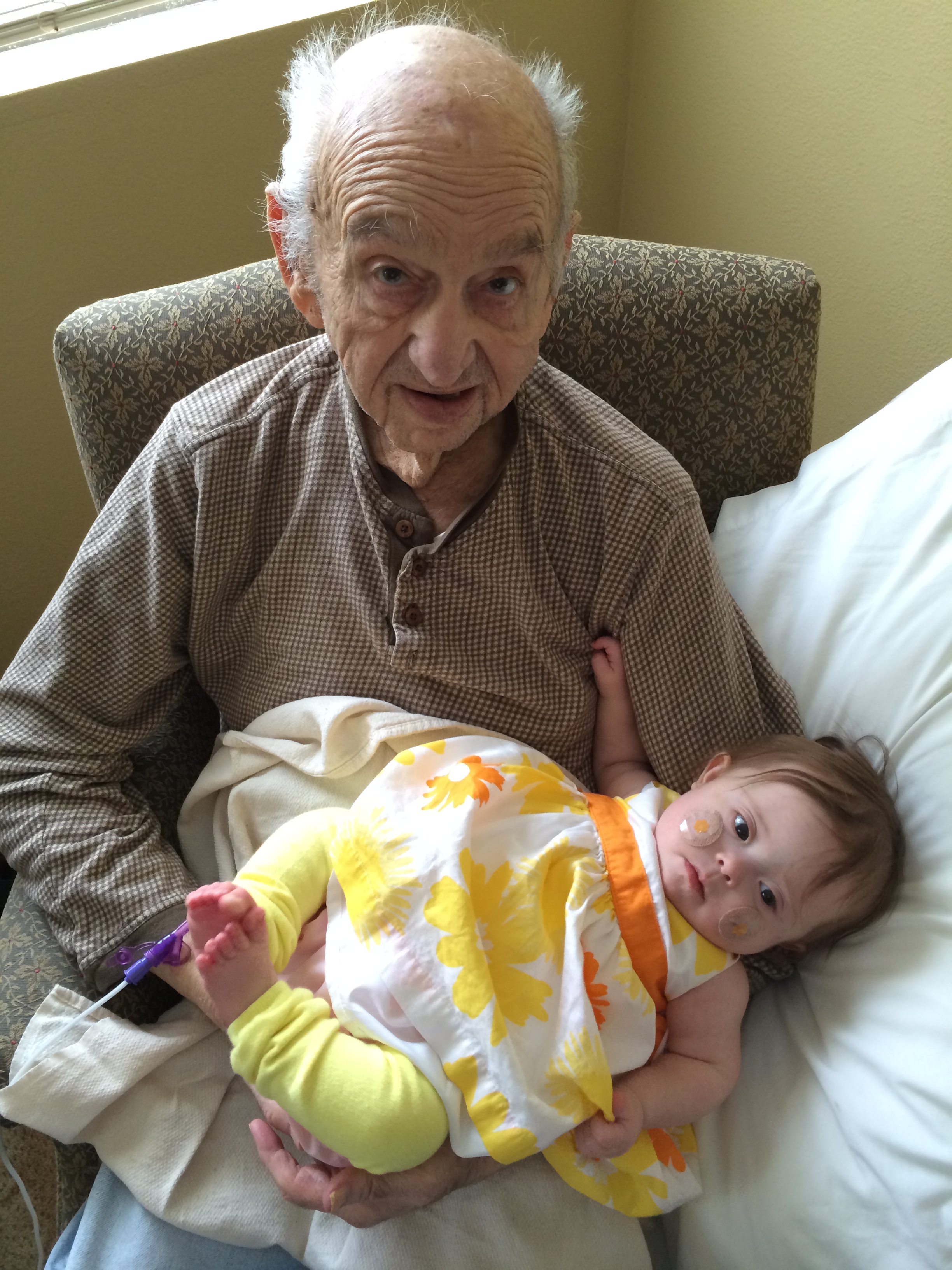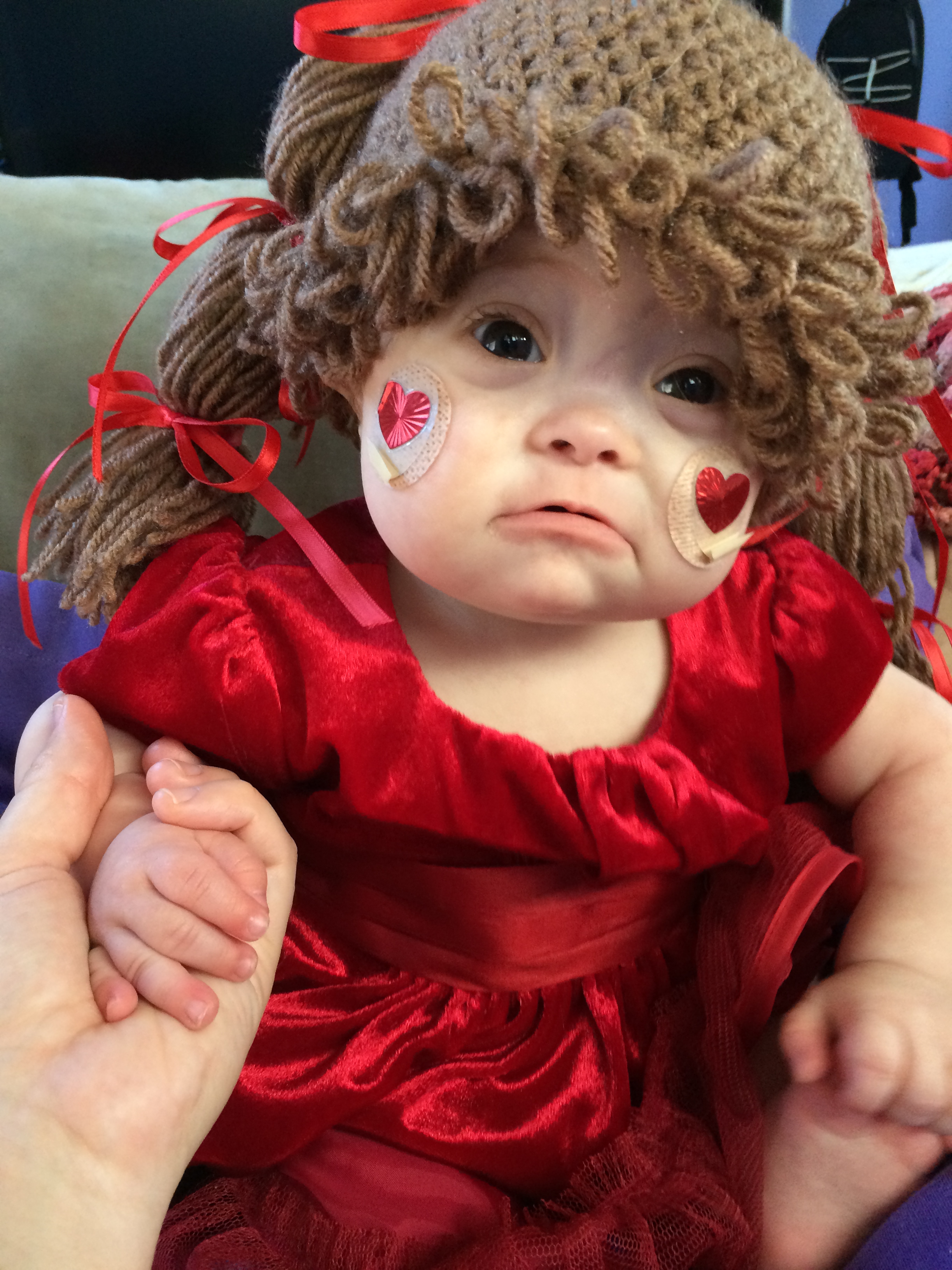 Our little ladybug had an adventure today! Gran was with BabyBug because Mama had an appointment. Not half an hour after Mama left, Mama (that’s me, in case you weren’t sure) received a phone call from Gran. “Lisa! Emergency! Leah pulled out her g-tube! What do I do?” Oh, BabyBug. This makes the first time she has actually physically pulled it out herself as opposed to it getting stuck on something – and it has been a very long time since that happened. Definitely the first occurrence of 2014. Leah’s surgical nurse practitioner was kind enough to see her on short notice, so Gran and BabyBug took a little field trip. Good times.