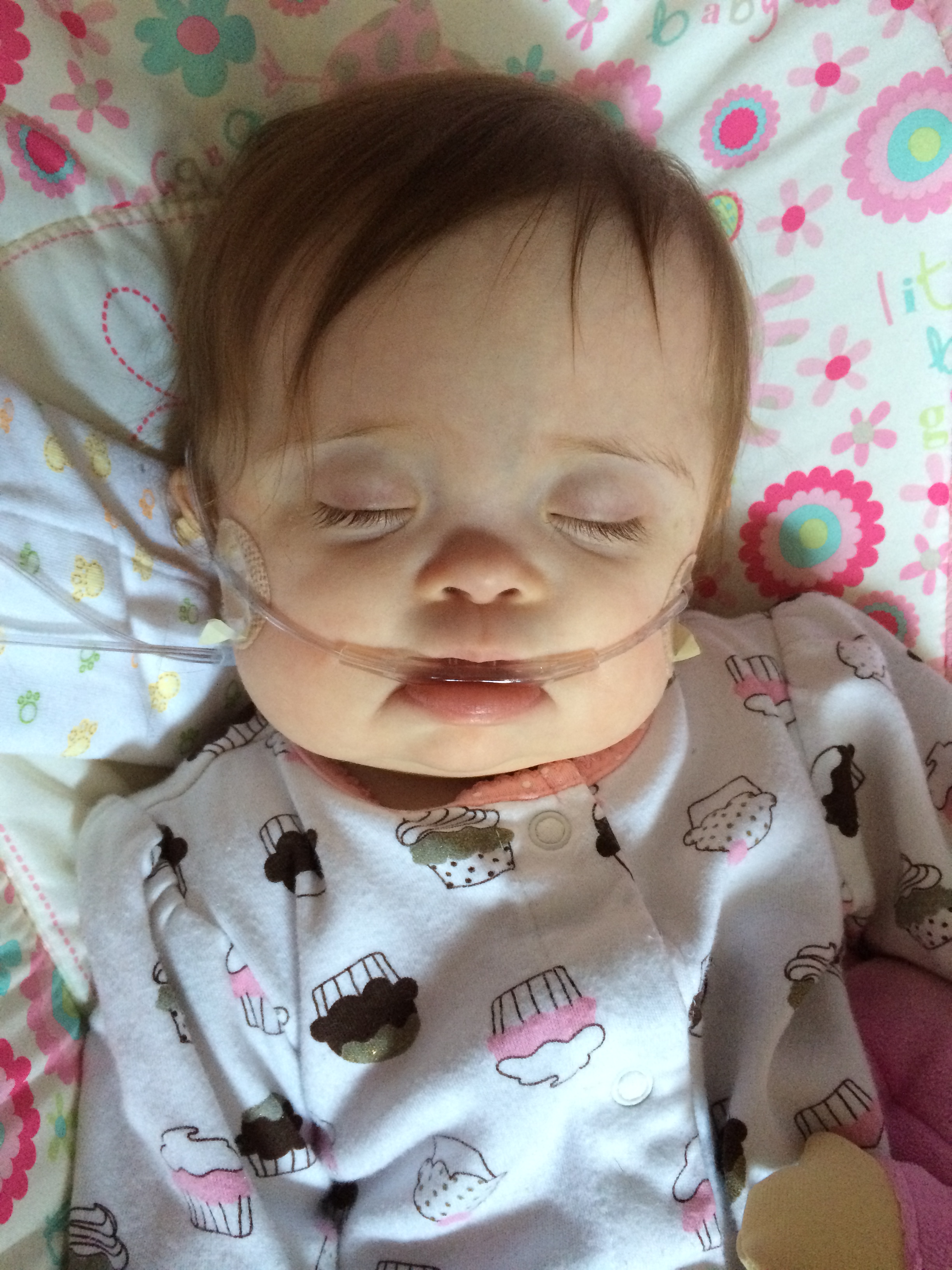 The docs had initially told us to anticipate a 3-5 day hospital stay, but after the surgery her surgeons felt it had gone smoothly enough that if she did well with overnight observation she could go home the following day. Leah spent nearly the entire day sleeping, and was super-fussy when she was awake. We got a few weak smiles out of her, but she was mostly just wanting to sleep. She got pretty puffy by Thursday evening, and they had to give her an extra dose of Lasix (she hadn’t gotten her meds before the surgery Thursday morning). Leah spent most of Friday sleeping as well, but when she was awake she went back and forth between moderately cheerful when still and red-faced and screaming when moved.