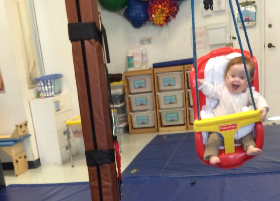 A screenshot of my very favorite moment from the swinging video. That is pure baby joy!