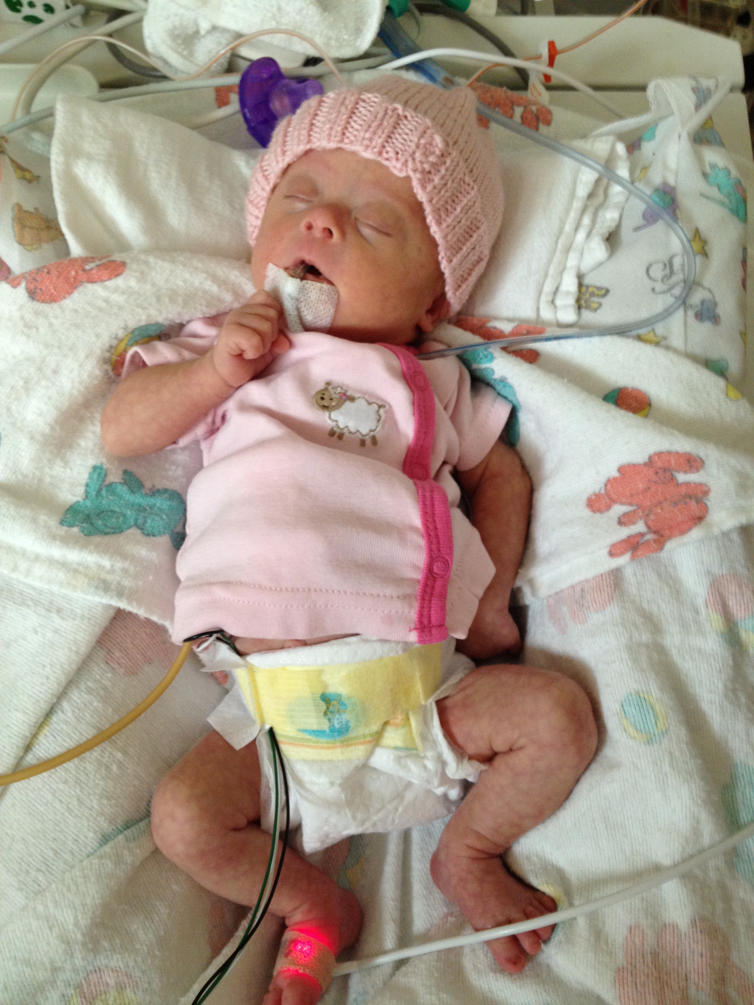 Leah is at 4 lbs 3 oz today. She’s had a little bit of trouble the past couple of days. As you know, she yanked her tube out on Wednesday. Yesterday it was Mandy’s turn to have kangaroo time cut short when she noticed there was blood in Leah’s suction tube. The nurses said sometimes the tube can irritate the lining of the throat, but still they wanted to put her back to monitor her. Today we got a call from the doctor (that’s never good…) letting us know that she hears a bit of a murmur from Leah’s VSD – the little hole in her heart. They are monitoring that as well. I don’t think this is anything particularly new, except that it’s a little bit more on their radar now that it’s causing detectable signs. I guess. The doc is still hoping it will close on its own and not require further intervention, but the possibility is there. They are going to do another ultrasound of her brain soon to check on the choroid plexus cyst.